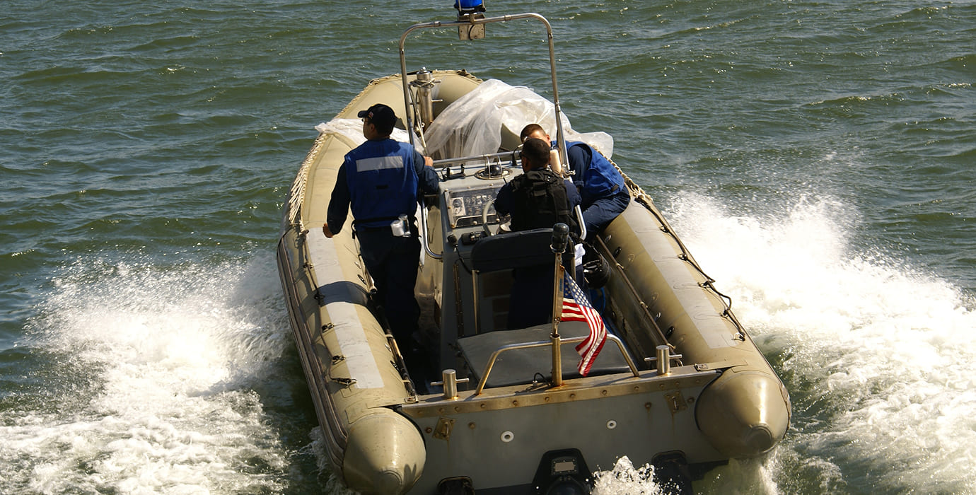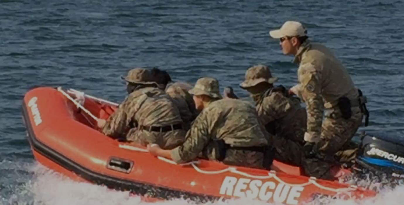 군/경에서 주로 사용하는 15인승 고속단정(FRP선체/폼방현대)를 HDPE선체/HDPE방현대를 탑재한
